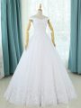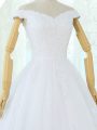 Spectacular A-line Bridal Gown White Off The Shoulder Tulle Sleeveless Floor Length Lace Up