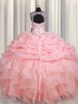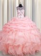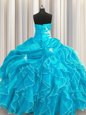 Spectacular Aqua Blue Sleeveless Beading and Appliques and Ruffles Floor Length Vestidos de Quinceanera