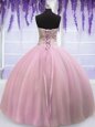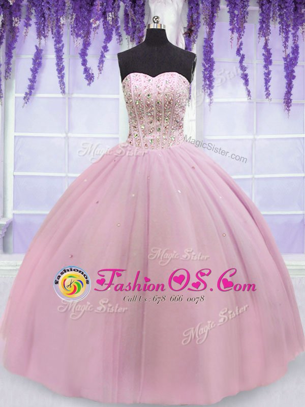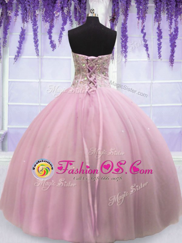 Spectacular Baby Pink Sweetheart Lace Up Beading Quinceanera Gowns Sleeveless
