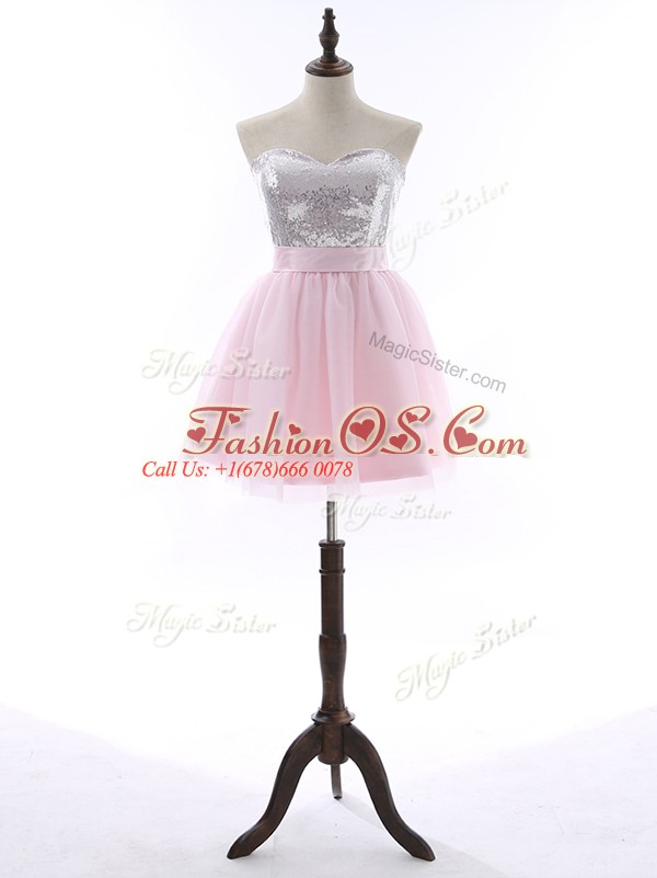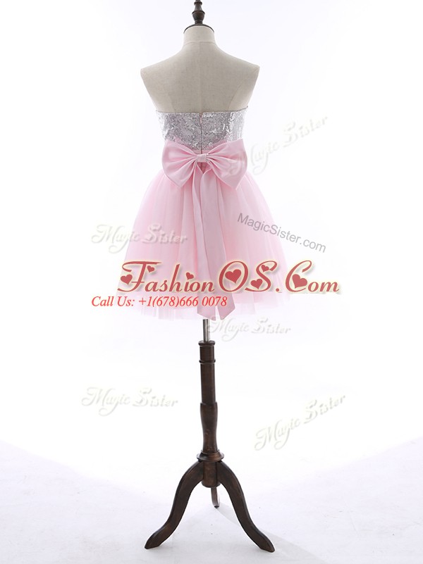 Spectacular Baby Pink Tulle and Sequined Zipper Sweetheart Sleeveless Mini Length Prom Party Dress Sequins and Bowknot