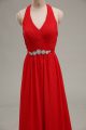 Spectacular Beading and Ruching Mother Of The Bride Dress Red Zipper Sleeveless Floor Length
