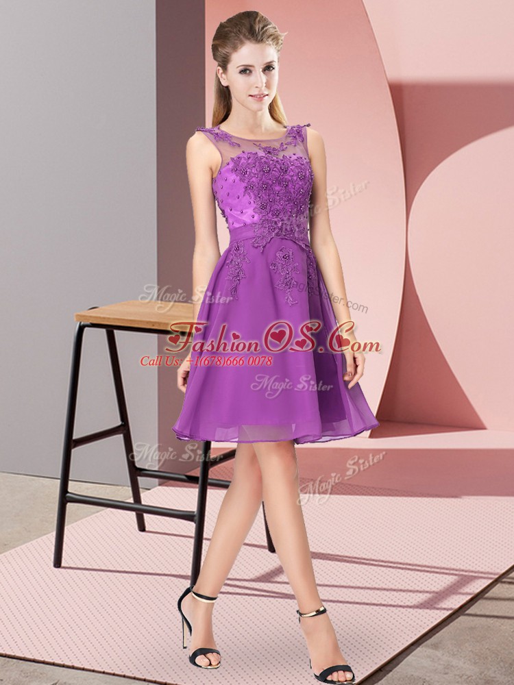 Spectacular Eggplant Purple Sleeveless Chiffon Zipper Dama Dress for Prom and Party and Wedding Party