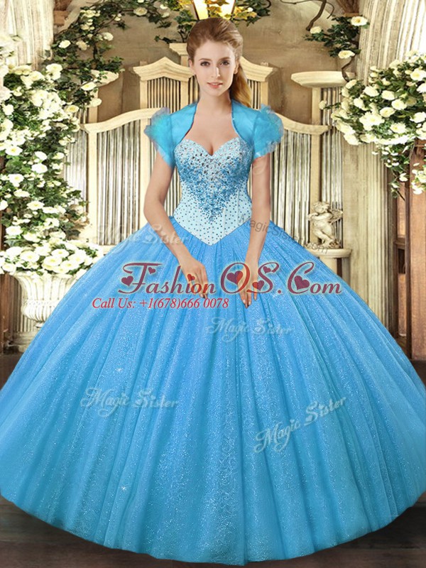 Home >  Quinceanera Dresses >  Fast Delivery Quinceanera Dresses > Spectacular Floor Length Ball Gowns Sleeveless Aqua Blue Sweet 16 Dresses Lace Up
