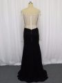 Spectacular Floor Length Black Evening Wear Chiffon Long Sleeves Beading