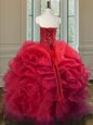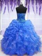 Spectacular Four Piece Sweetheart Sleeveless Organza Quinceanera Dresses Beading and Ruffles Lace Up