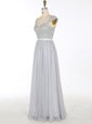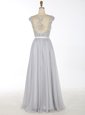 Spectacular Grey A-line V-neck Sleeveless Chiffon Floor Length Zipper Beading and Appliques Mother Of The Bride Dress