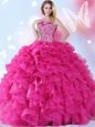 Home >  Quinceanera Dresses >  Fashionable Quinceanera Dresses > Spectacular Halter Top Sleeveless Lace Up Sweet 16 Dresses Hot Pink Organza