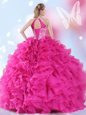 Spectacular Halter Top Sleeveless Lace Up Sweet 16 Dresses Hot Pink Organza