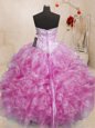 Spectacular Lilac Lace Up 15th Birthday Dress Beading and Ruffles Sleeveless Floor Length