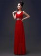 Home >  Special Occasion Dresses >  Homecoming Dresses > Spectacular Red A-line Chiffon Square Sleeveless Beading Floor Length Zipper Homecoming Dress