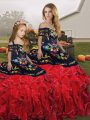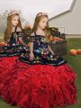 Home >  Quinceanera Dresses >  Princesita with Quinceanera Dresses > Spectacular Red And Black Organza Lace Up Off The Shoulder Sleeveless Floor Length Vestidos de Quinceanera Embroidery and Ruffles