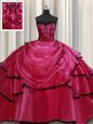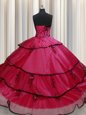 Spectacular Red Quinceanera Dresses Military Ball and Sweet 16 and Quinceanera and For with Beading and Appliques and Ruffled Layers Sweetheart Sleeveless Lace Up