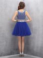 Spectacular Scoop Mini Length A-line Sleeveless Royal Blue Evening Dress Side Zipper