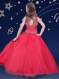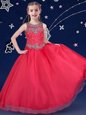 Spectacular Scoop Red Sleeveless Beading Floor Length Little Girls Pageant Gowns