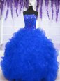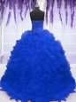 Spectacular Sleeveless Brush Train Beading and Ruffles Lace Up 15th Birthday Dress