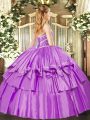 Spectacular Sleeveless Floor Length Beading and Ruffled Layers Lace Up Vestidos de Quinceanera with Hot Pink