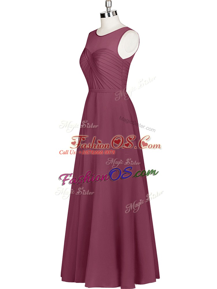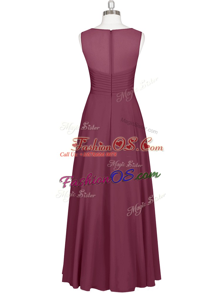 Spectacular Sleeveless Floor Length Ruching Zipper Dress for Prom with Burgundy