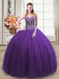 Spectacular Sweetheart Sleeveless Lace Up Sweet 16 Dresses Purple Tulle