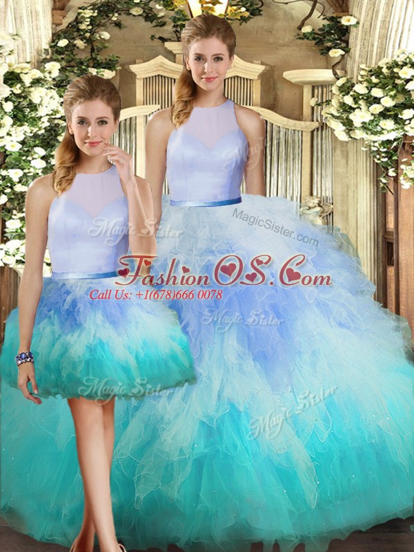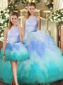 Spectacular Tulle High-neck Sleeveless Backless Ruffles Sweet 16 Quinceanera Dress in Multi-color