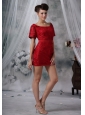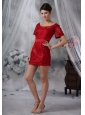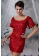 Home >  Special Occasion Dresses >  Cocktail Dresses > Spirit Lake Iowa Wine Red Lace Decorate Bodice Scoop Neckline Mini-length Short Sleeves Sash Prom / Cocktail Dress