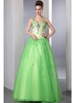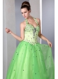Home >  Prom Dresses >  Beautiful Prom Dresses > Spring Green A-line Halter Prom Dress Satin and Organza Beading Floor-length