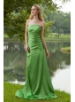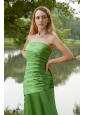 Spring Green A-line Strapless Brush Train Taffeta Ruch Bridesmaid Dress