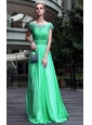 Spring Green Empire Bateau Floor-length Chiffon Beading Prom Dress