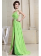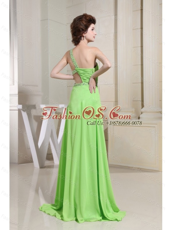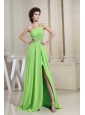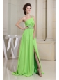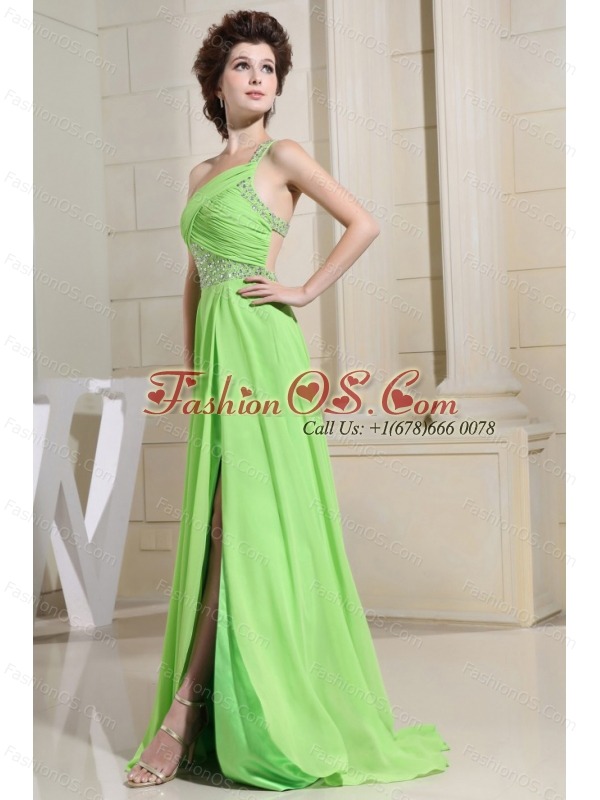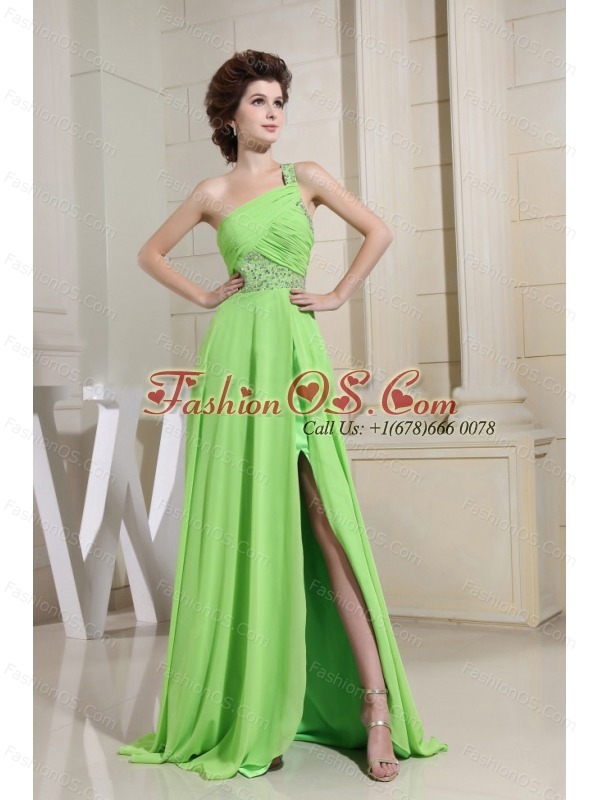 Home >  Prom Dresses >  Popular Prom Dresses > Spring Green Prom Dress With High Slit One Shoulder and Beading Ruch