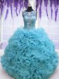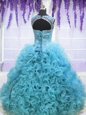 Square Baby Blue Sleeveless Organza Lace Up Vestidos de Quinceanera for Military Ball and Sweet 16 and Quinceanera