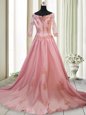 Silhouette: A-line Neckline: square Sleeve Length: long sleeves Hemline/Train: with train Back Detail: zipper Embellishment: beading,appliques Fabric: satin Shown Color: peach(Color & Style representation may vary by monitor.) Occasion: prom,party Season: spring,summer,fall,winter Fully Lined: Yes Built-In Bra: Yes
