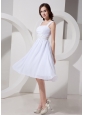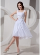 Home >  Wedding Dresses >  Latest Wedding Dresses > Square Neck Appliques Knee-length Chiffon Customize Prom Gowns