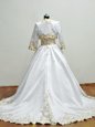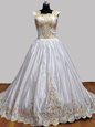 Square Sleeveless Taffeta With Brush Train Zipper Vestidos de Quinceanera in White for with Embroidery