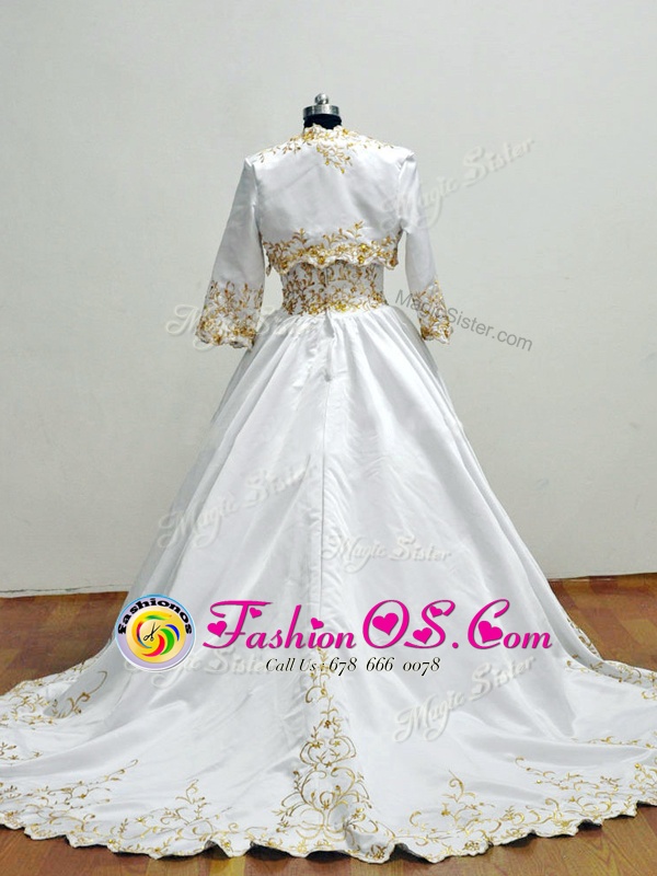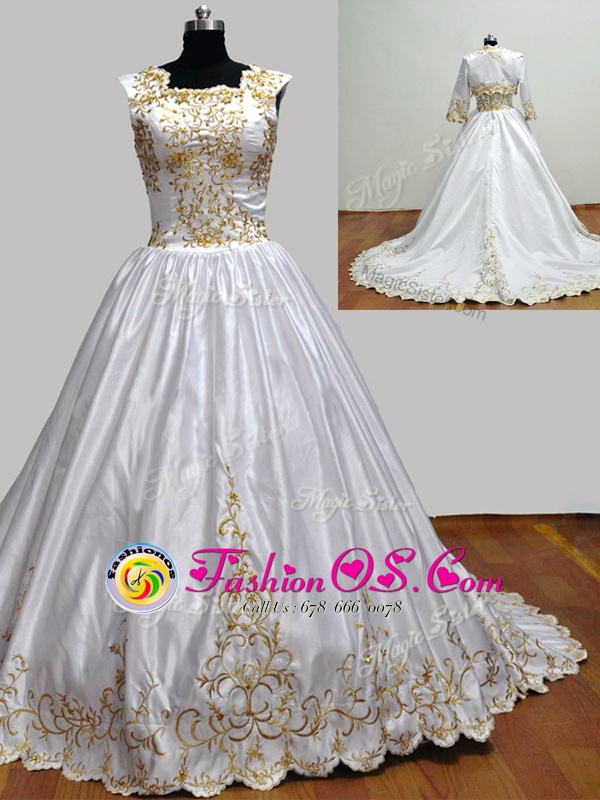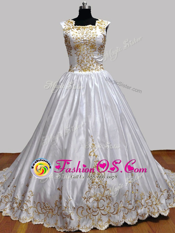 Home >  Quinceanera Dresses >  Cheap Quinceanera Dresses > Square Sleeveless Taffeta With Brush Train Zipper Vestidos de Quinceanera in White for with Embroidery