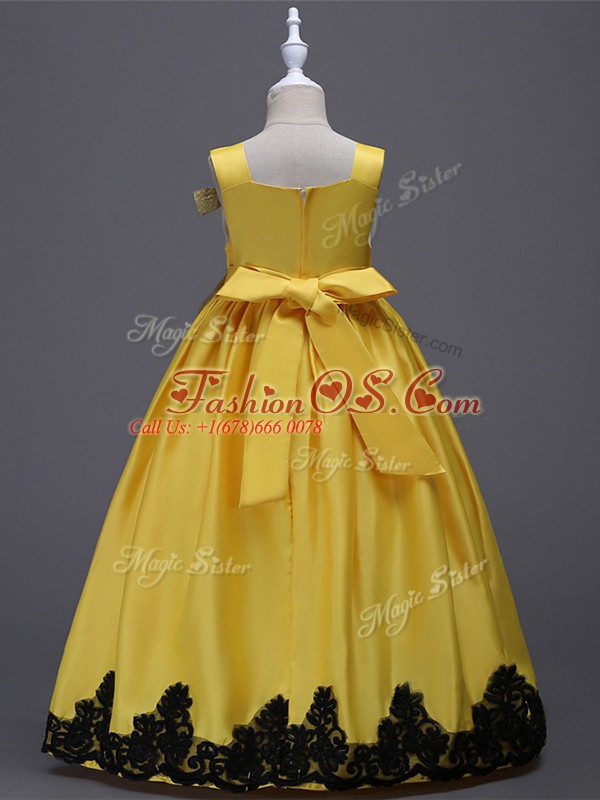 Square Sleeveless Zipper Pageant Gowns For Girls Yellow Taffeta