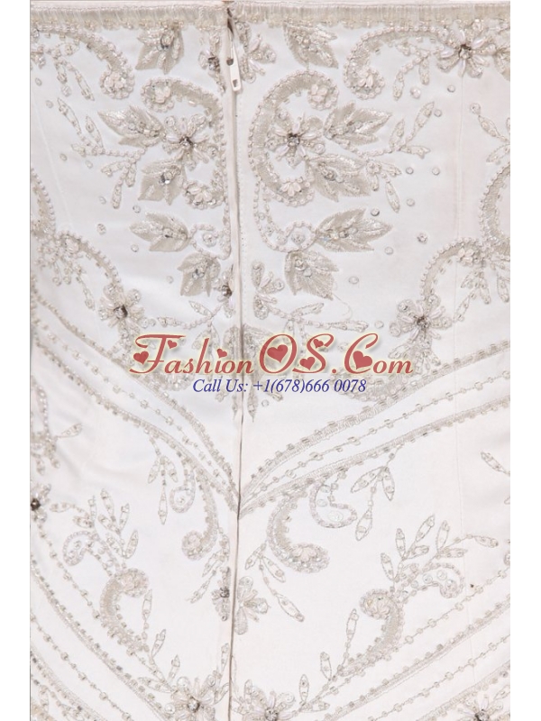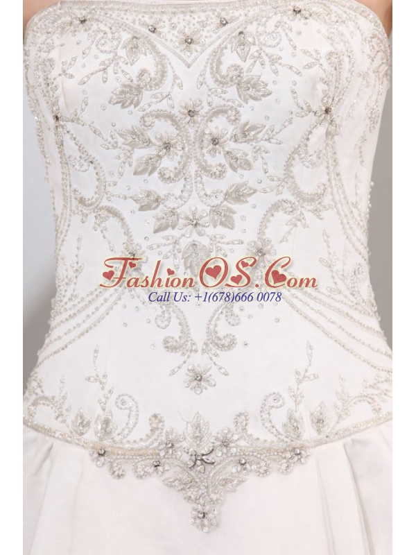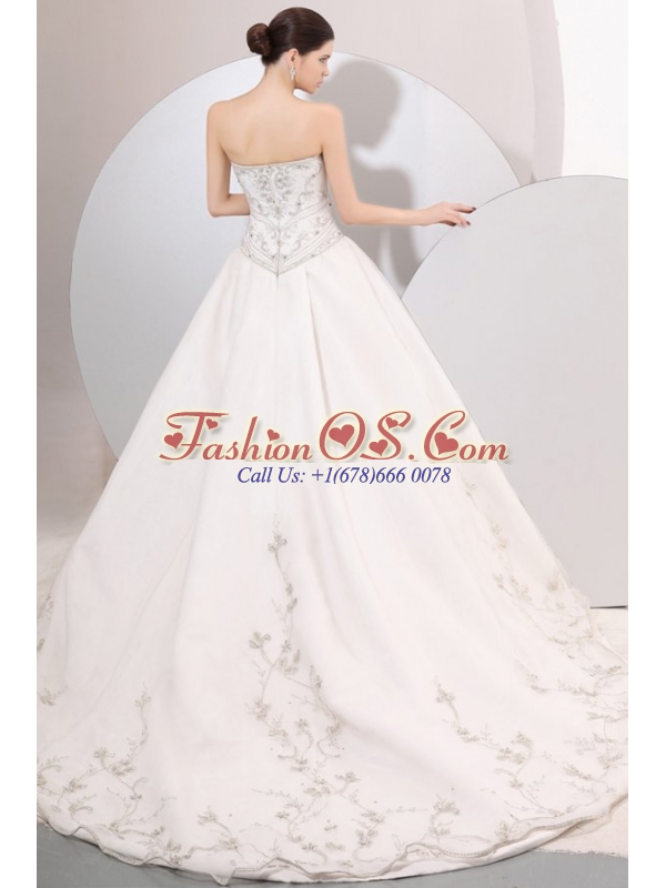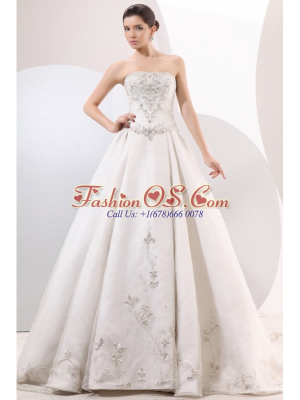 Strapless A-line Embroidery and Beading Wedding Dress with Chapel Train