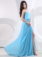 Home >  Prom Dresses >  Popular Prom Dresses > Strapless and High Slit For Prom Dress With Baby Blue and Brush Train