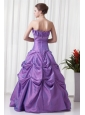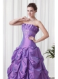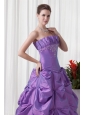 Strapless Appliques and Pick-ups Taffeta Lilac Quinceanera Dress