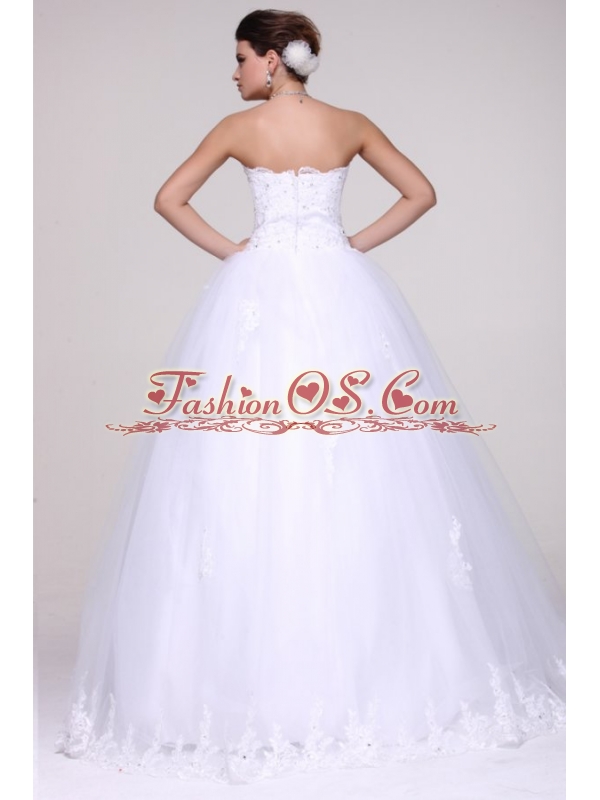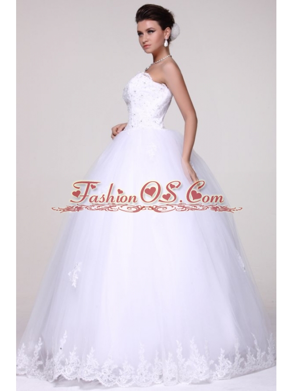Home >  Wedding Dresses >  Perfect Wedding Dresses > Strapless Ball Gown Lace Appliques Floor-length Wedding Dress