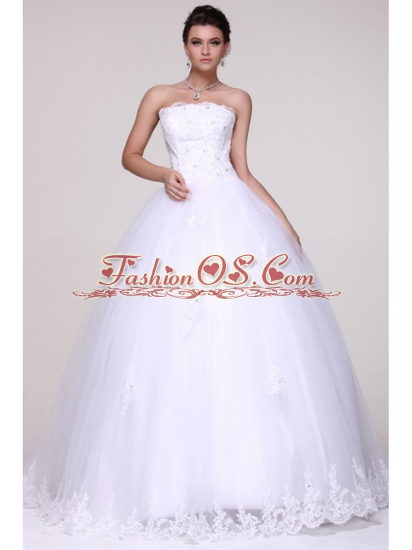 Strapless Ball Gown Lace Appliques Floor-length Wedding Dress
