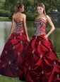 Strapless Ball Gown Wine Red Quinceanera Dress with Embroidery