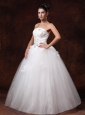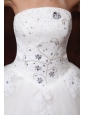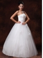 Strapless Beaded Floor-length A-Line Tulle Wedding Dress For 2013 Custom Made