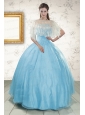 Strapless Beading 2015 Affordable Quinceanera Dress in Baby Blue