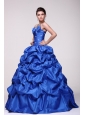 Home >  Quinceanera Dresses >  Luxurious Quinceanera Dresses > Strapless Beading and Pick-ups Taffeta Quinceanera Dress in Blue