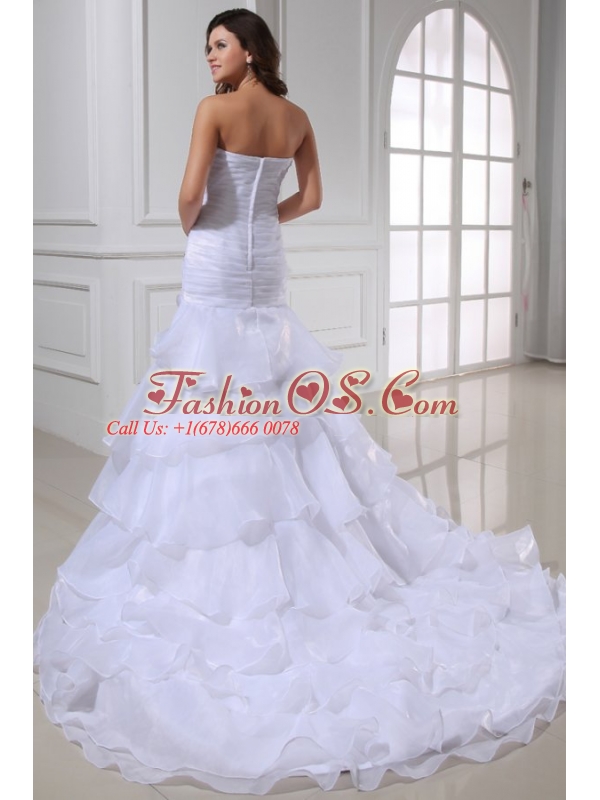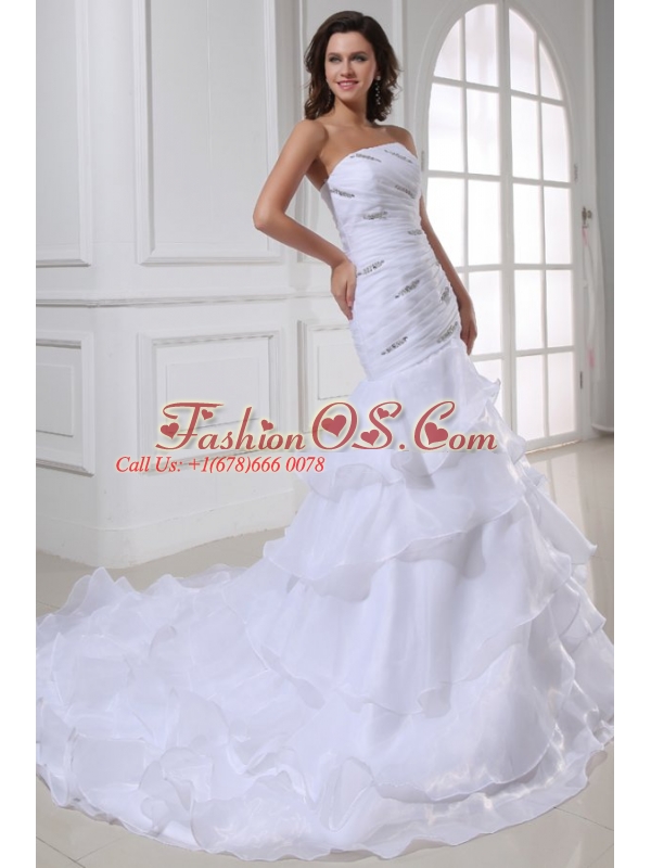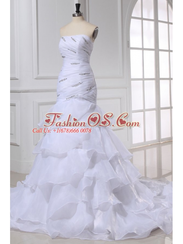 Strapless Beading and Ruffles Layered Organza Wedding Dress