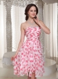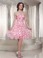 Strapless Beading Ruch Knee-length Printing Prom / Cocktail Dress