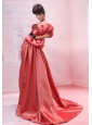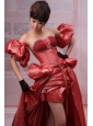 This vintga dress will bring you enough confidence and show your infinite charm. Wearing this bold prom dress, your sexy figure, your attractive charm, even your inside temperament will be reflected vividly and incisively. The bust area is decorated by delicate beadwork. What's more the lantern shape sleeves is so eye-cactching.The amazing high-low skirt is reminiscent of the old fashioned hoop skirts and is made from taffeta that add another dimension of beauty to an already lovely dress.