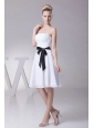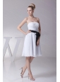 Are you still looking for a fantastic dress that will impress everyone on the big day?There is no better choice than this one. This white dress features a strapless bodice with a ruched straight neckline, which is pretty and noble. The black sash decorates your waist area and contours your curve. The skirt is knee-length and made of chiffon. You will be the beautiful one under the spotlight in this dress!