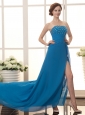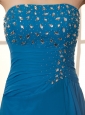 Strapless High Slit Bodice Chiffon Beaded Stylish Custom Made Prom Gowns
