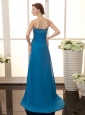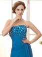 You will be the shining star in any occasion with this gorgeous dress. It features a straight neckline with shimmering beadings fully around the bust area. A shaped beading gathered the ruching part on the left waist which contours your slim figure. A slit is cut above the knee toghther with the open back make the dress sexy and stunning. The sweep train creates a beautiful shape when you move.