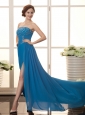 Home >  Prom Dresses >  Elegant Prom Dresses > Strapless High Slit Bodice Chiffon Beaded Stylish Custom Made Prom Gowns